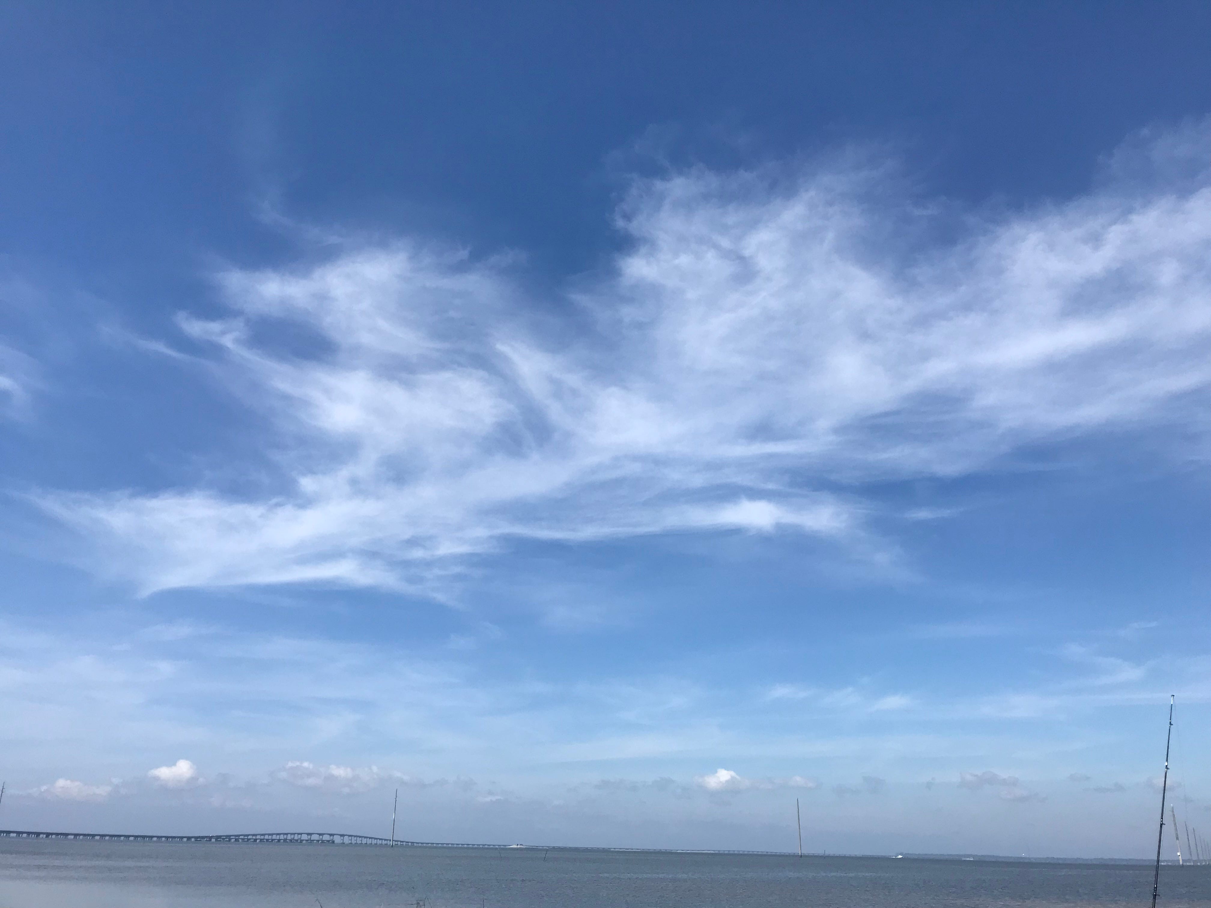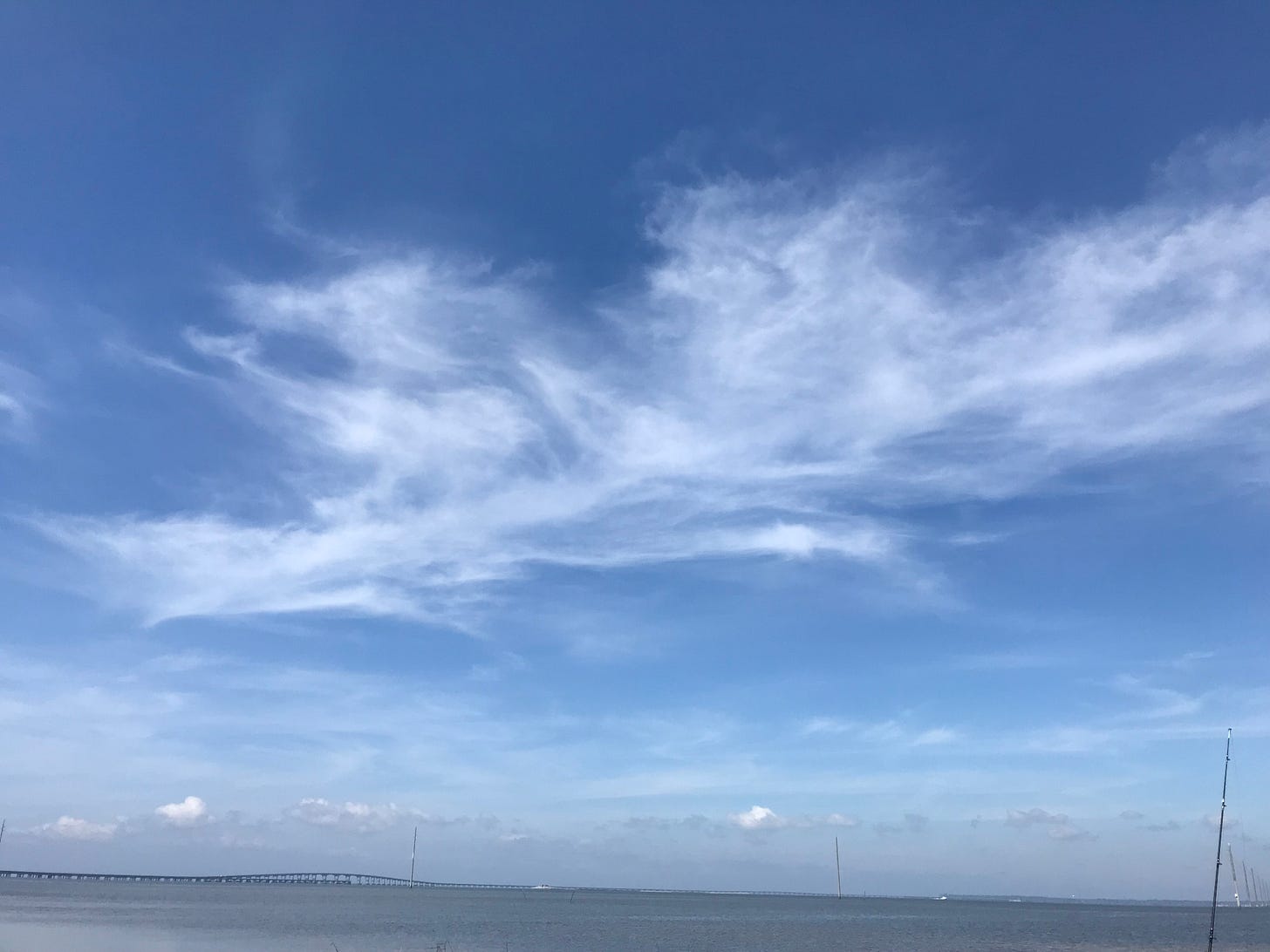 With regard to quagmire, SAM barely managed to extricate himself from a mucky spot bayside at low tide while trying to cast his line out farther, and I managed to snicker a bit before snapping the photo of a cloud that looks quite like a dragon. What do you think? How appropriate, I thought, to see such a cloud floating high above St. George Island. If you’re not familiar with the legend of St. George, feel free to look him up on stgeorgessociety.org. Here’s a snippet that I thought went hand in hand with our need to unwind the old minds as well as the fishing line: